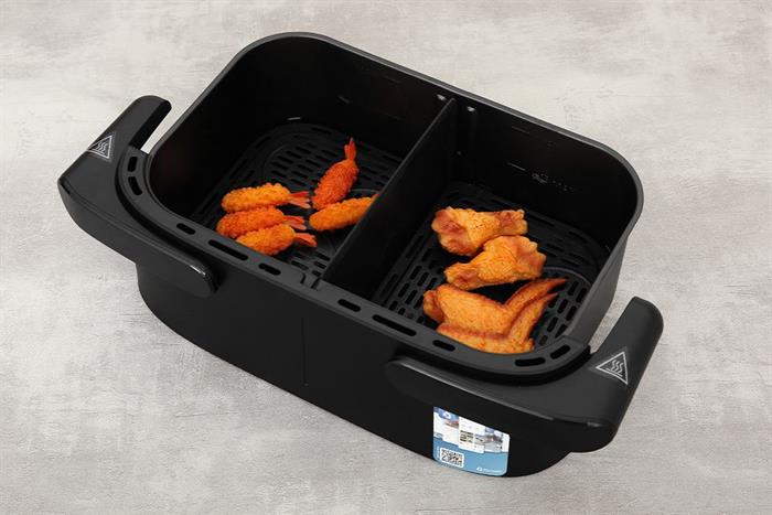 Thiết kế 2 trong 1: hai ngăn tách biệt có thể hợp nhất thành một khay chiên lớn với dung tích 7.1 lít.